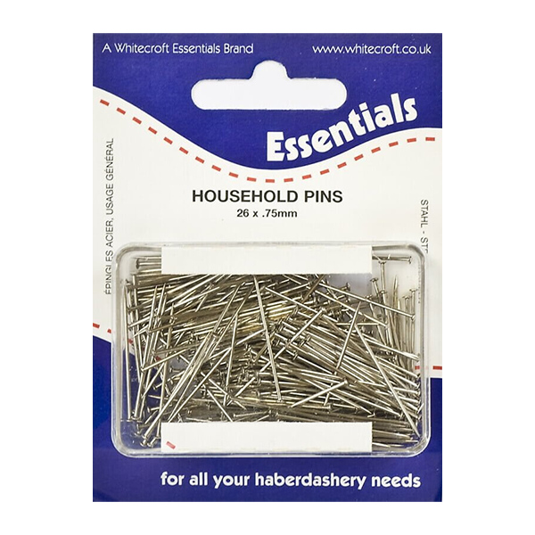 10 Whitecroft Essentials Retail cards of Dressmaker Pins – Nickel Plated – 26mm x 0.75mm – each 25g