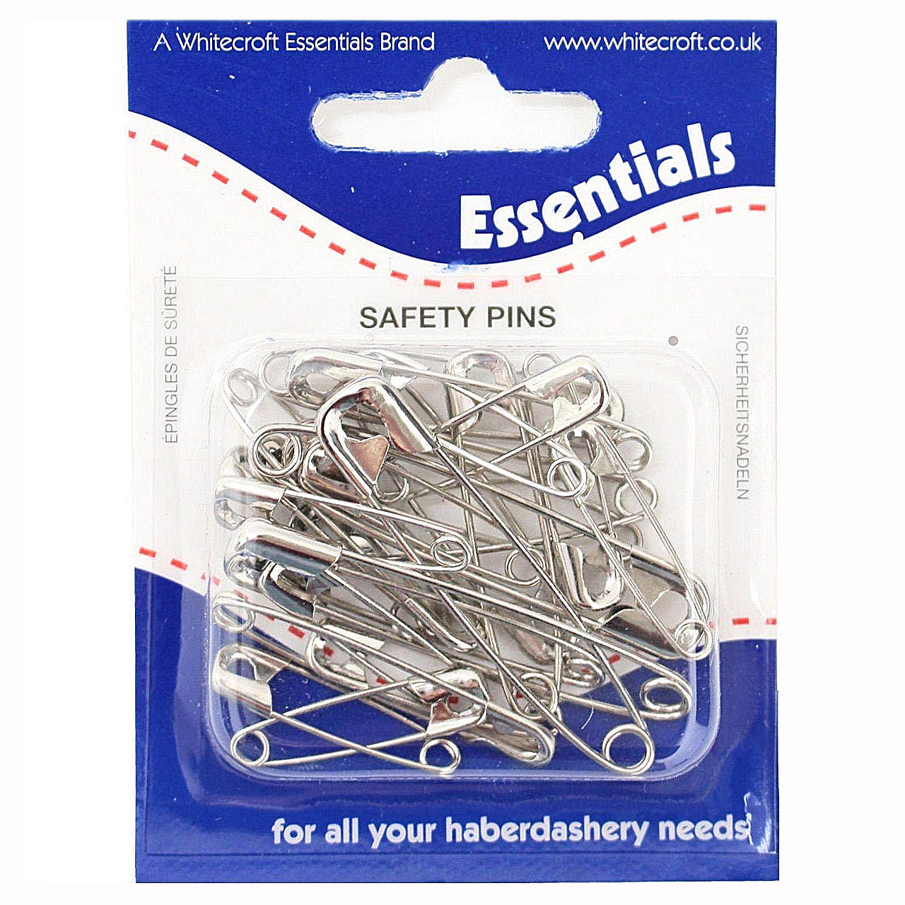 10 x Retail Cards of 24 Whitecroft Essentials Safety Pins Nickel Plated. Assorted Sizes 27, 38 & 50mm
