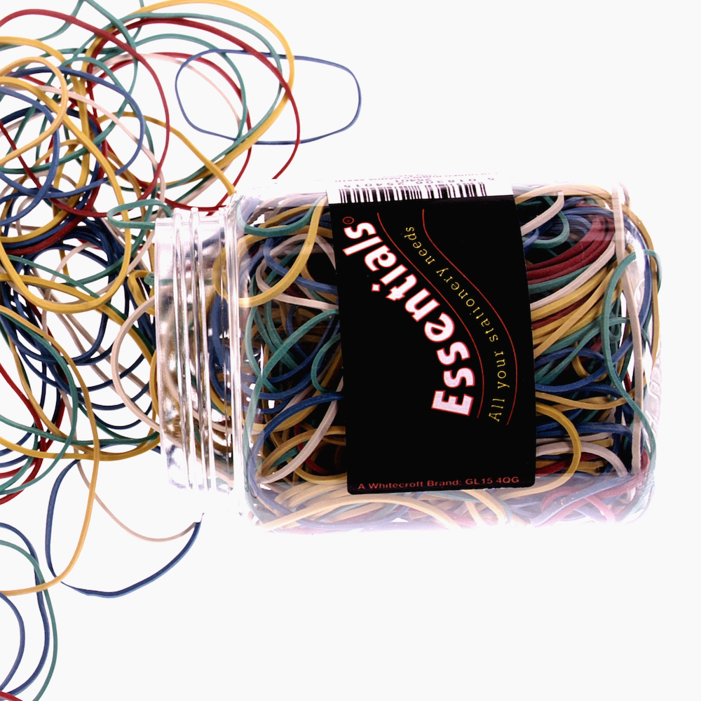 1 Tub of Whitecroft Essentials Rubber Bands – Assorted Sizes and Colours – 150 g